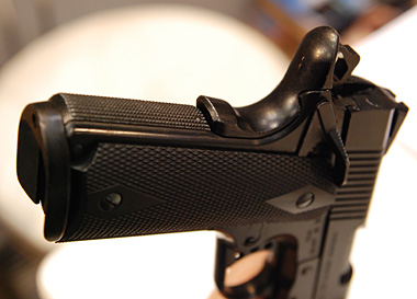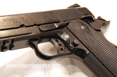 ライブで可動するグリップセフティは1911ならでは。マグウェルも付く。