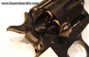 バレル下のエジェクターロッドでカートを押し出す。シリンダーホールは改造防止のため独立しておらず、6つの穴が繋がっているような形状になっている。