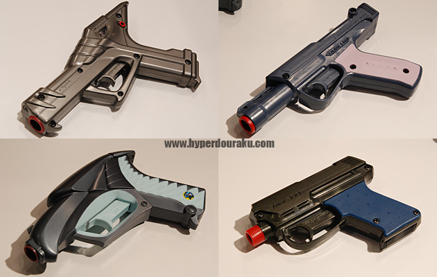 バリエーションは4種類。左上からWOLF 400(\1,350)、AUTOMATIC 300(\950)、EAGLE 400(\900)、Mini 300(\800)。400とか300の数字はBB弾の装弾数を表す。つまり400連発。