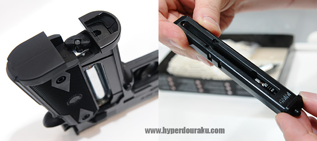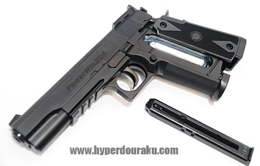最大の特徴はパワーソースとして、マガジン内に12gの炭酸ガスボンベをセットすること。ボンベはネジなしタイプ。