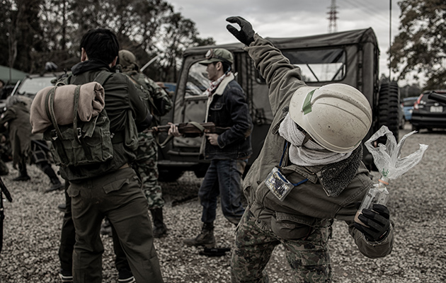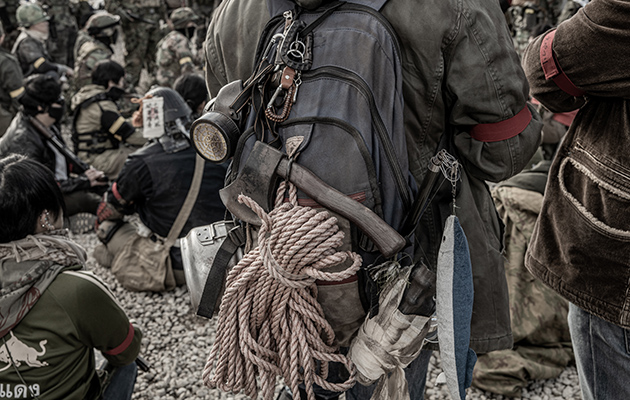 今回、女性も何名か参加していた。左から「フリーランスの傭兵」戦場でも大いに活躍してクーデター軍の一翼を担う存在となっていた。右が「国に忠義を果たす事を生業にしている"忠国研究会"の会員」右派学生運動の流れをイメージした設定が独創的である。