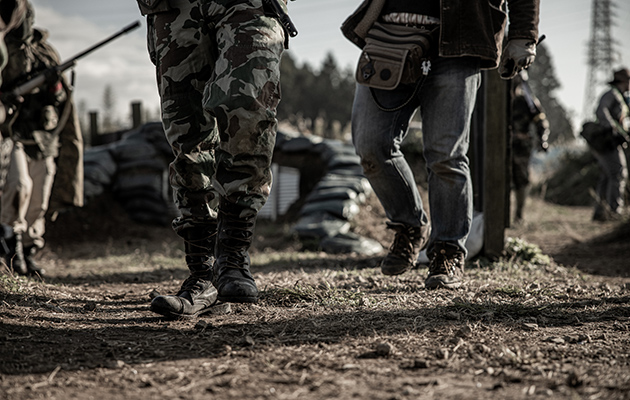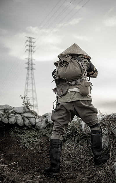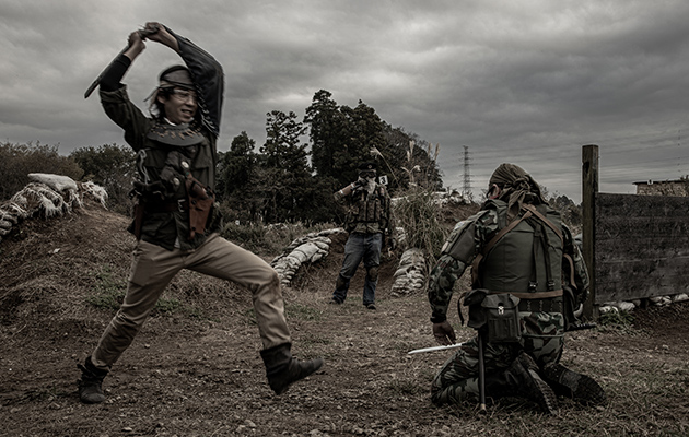 参加者各々の設定は足並みにも個性が出ていた。ゲートルを巻くもの、ジーンズを履く者、自衛隊の旧迷彩服を着る者、時代背景に合わせながらも実に多様だった。