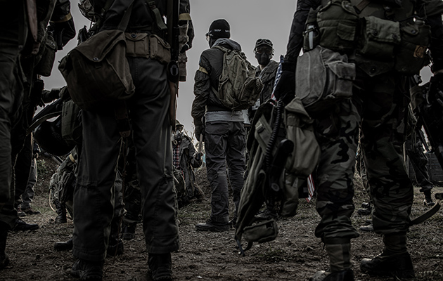 クーデター軍が政府軍を打倒した直後、中核部隊と協力民兵組織や傭兵等将校達による集合写真。とてもエモい。