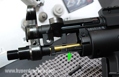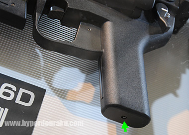 可変ホップアップの調節レバーは従来通りフォアグリップを外した位置にある。