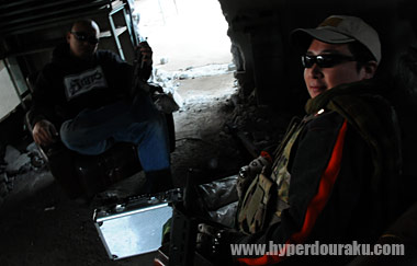 全員で6名。さらにアジトのキングジョー氏に加わってもらい、SCAR-Lをメインとしたサバイバルゲームシーンを撮影。
