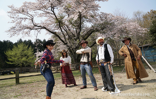 ウエスタンのコスプレで、桜を見ながらお肉とポークビーンズを頬張る!! 最高の休日じゃないですか!!