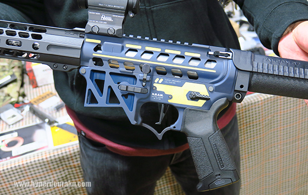 次世代電動ガンの最新モデル、HK416 デルタカスタムです。ガイズリータイプのレールハンドガードが標準装備です。レール、アッパー、ロア、ストックと全て微妙に色調を変えてあり、実銃らしさを演出しています。価格未定、2017年新春発売予定。1月中には発売できるでしょうとのことです。