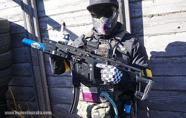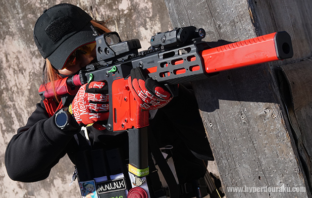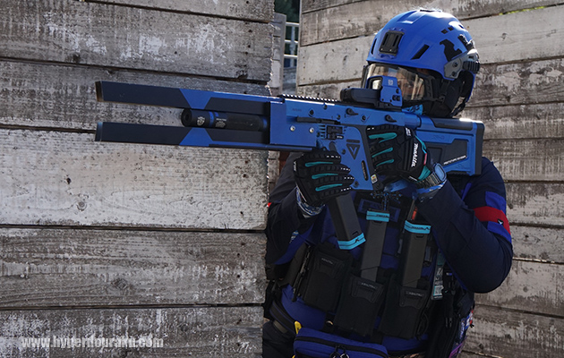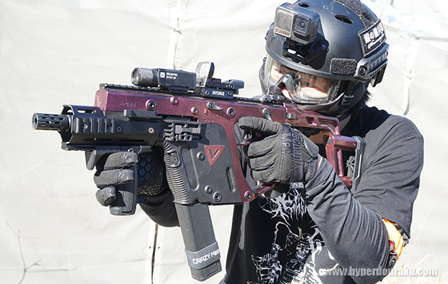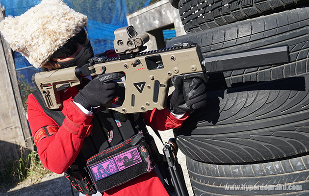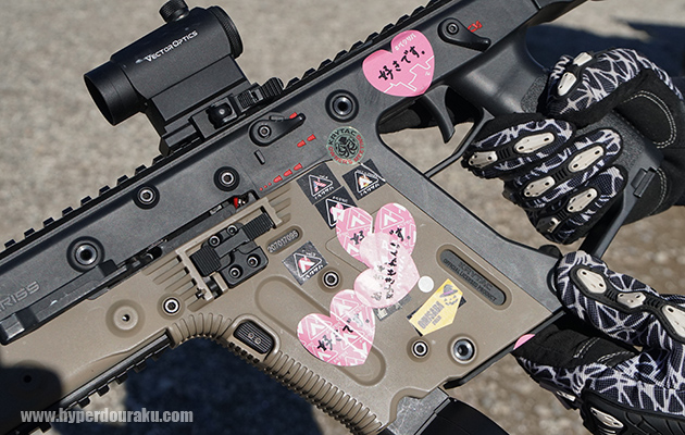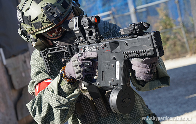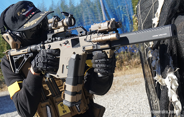 KRYTACからは電動ガンとガスブローバックのベクターが発売されていて、こちらは外装式ソースにカスタムしたガスガン。