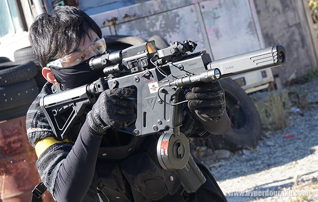 KRISS VECTORとは米KRISS社が開発した独自のクリス スーパーVシステムと、低いボアアクシスにより、発射時の反動抑制が良好な.45口径サブマシンガン。映画やゲームなどにもよく登場するベクターのエアソフトガンを使用したワンメイクサバゲーが「ベクサバ」だ。
