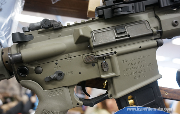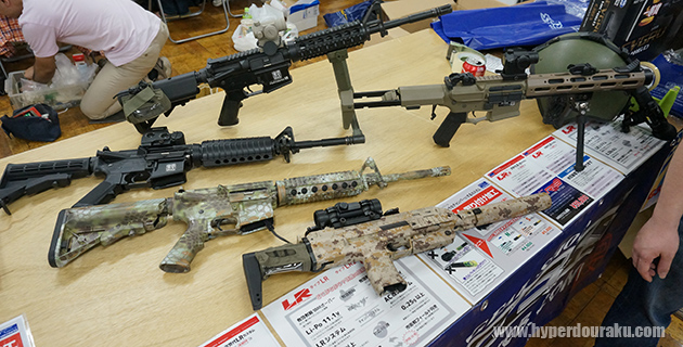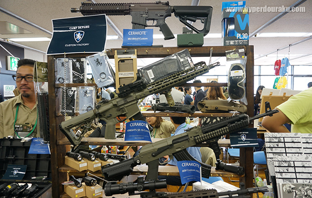 フォートレスのブースでは各種カスタムガンを展示・販売。ARESのハニーバジャーにはクッションラバー仕様のオリジナルチャンバーカスタムを施している。