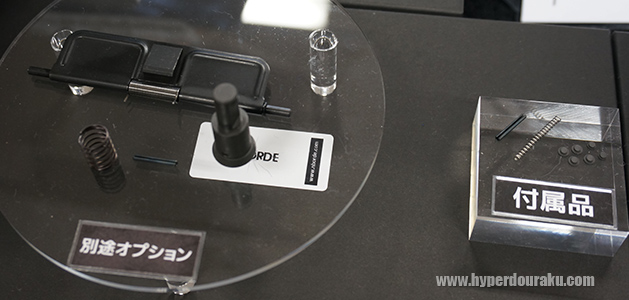 NBORDEではトレポン用の削り出しレシーバーを展示。海外製カスタムパーツが多い中、本製品は完全日本製を謳っている。