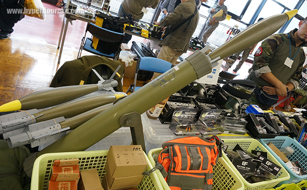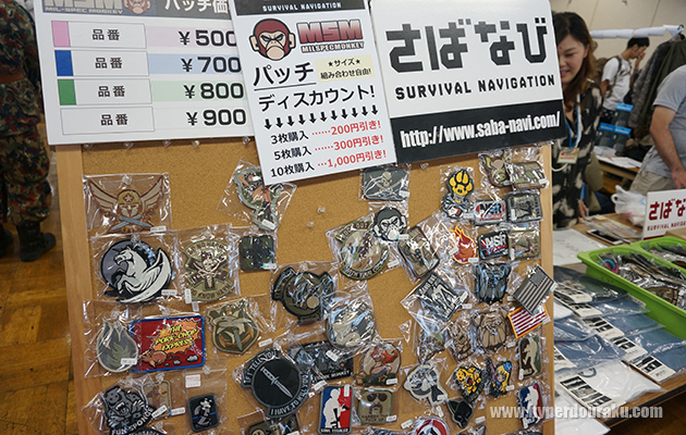 さばなびブースでは間違って大量に仕入れてしまったというミリタリーパッチをディスカウント販売。その他レビューで使用したエアガンの特価販売も。