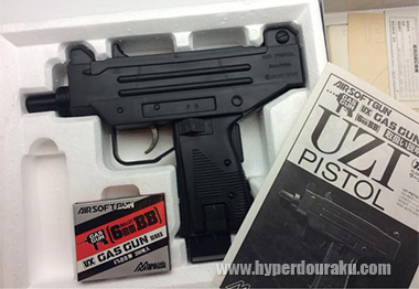 あまりの懐かしさに私も1丁購入。マルコシ製のUZIピストル。1986年製。底部からガスを入れ上部からBB弾を150発流し込む。セミオンリーで初速は65m/sで安定。