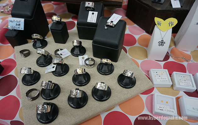 パンダジュエリーでは74式、90式戦車のキャタピラや自衛隊のマークをイメージしたリングやペンダントを販売。