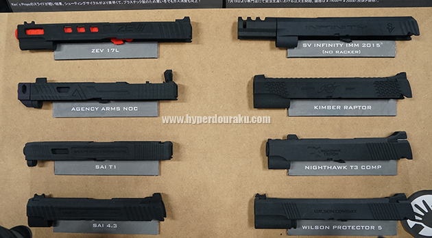 SAI、SV INFINITY、KIMBER、ZEV、NIGHTHAWK、WILSONといった人気のカスタムスライドがラインアップされている。