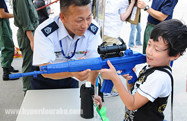 今年はパラレスキューの個人装備展示がなかった。ここ数年、ライフルやハンドガンなど、スモールアームズの展示が盛り上がっていただけにとても残念だ。米陸軍特殊部隊も見当たらず、ACUとマルーンベレーはどこへ行った!? と滑走路を右往左往する始末。