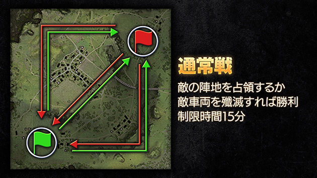 戦車の装甲は正面が厚い傾向があるので、真正面から撃ち合うのは効果的とは言えない。なるべく敵の側面や背面を撃つように心がけよう。