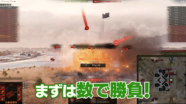 そしてなにより、味方との連携が大事。どんな戦車でも数では勝てないので、とにかく、複数で1両を狙うなど、数で優位に立てるように攻撃しよう。
