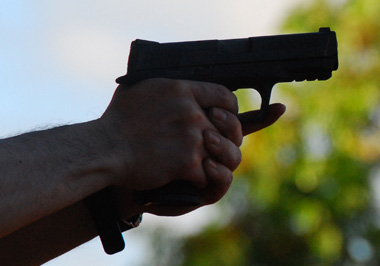 続いて中央のレンジに場所を移し、もう一丁の銃を撃つ。