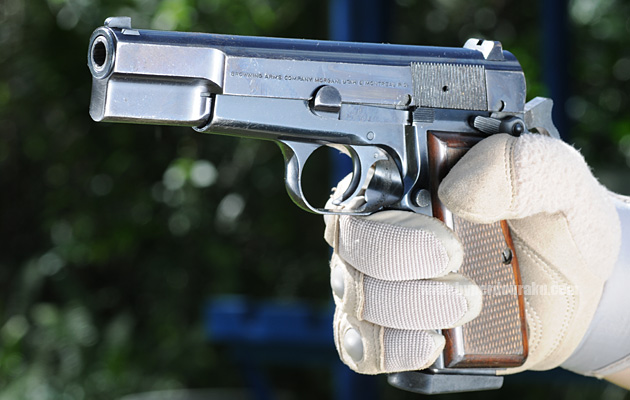 ベルギーのFN社が開発した9mmルガー弾を使用する大型オートマチック。表面の仕上げがタナカのスチールフィニッシュっぽい。