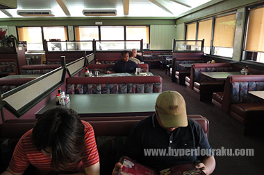 YASとアラレはパイレーツコーブ一番だというホームメードチーズバーガー($10)を、ミッチーはオールアメリカンビーフホットドック($8)をチョイス。チーズバーガーは1/2ポンドの脂身の少ないひき肉を使用していて焼き加減も絶妙。美味かった。ホットドッグも1/4ポンドの大きなソーセージで美味そうだった。ケチャップをビシバシ掛けて食す。