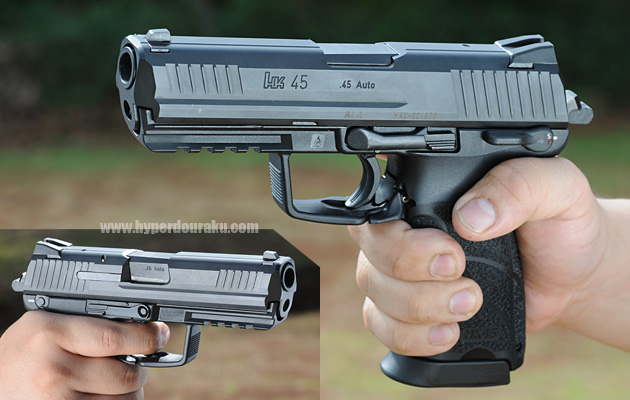 同じくH&K社の最新ポリマーフレームオート。Mk23 SOCOMピストルの後継機種。弾薬は.45ACP。リコイルはP30に比べたら若干強いが撃ちやすかった。