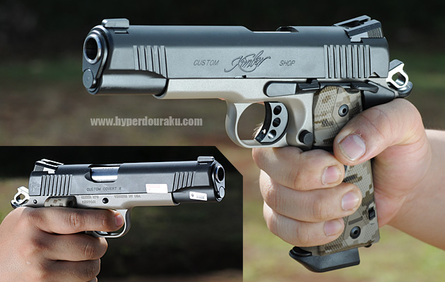 Kimber Custom Covert IIは2丁あった。コンパクトのほうは撃たなかったが、どちらもデザートデジタルカモのレーザーグリップ装着でタンカラーフレームとの組み合わせが絶妙にカッコ良い。