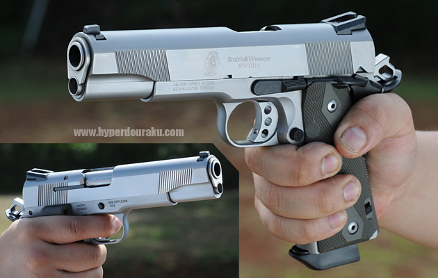 SISのスライドセレーションが特徴的。やっぱりガバ系は米国でも人気が高い。弾薬は.45ACP。