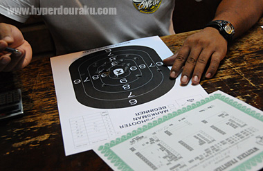 撃ったターゲットは回収して採点してくれる。これはYASの撃ったターゲット。