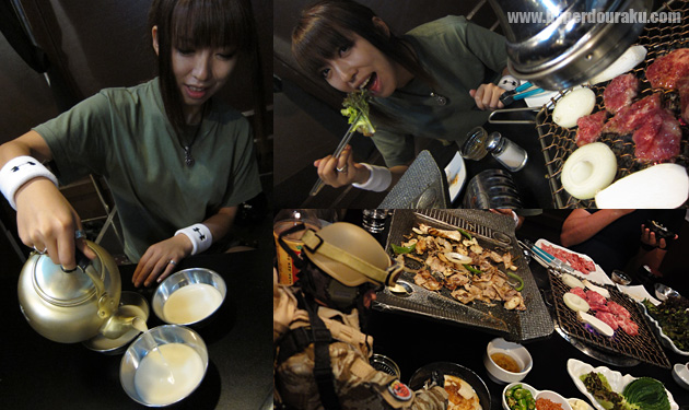 マッコリを呑んで、カルビを焼いて、サムギョプサル(豚バラ肉)をサンチュに包んで食べる。ウマー!!