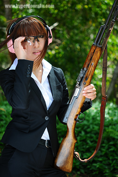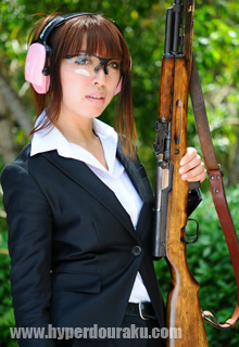 TAURUS PT92の9mmルガー弾のリコイルは結構女性にはキツいはずなのだが、乙夜さんはそこそこ反動を押さえ込んでいる。