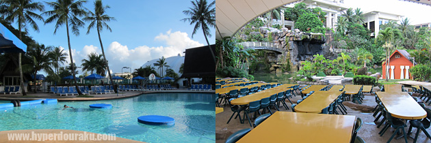 プールにウォータースライド、泳げる水族館、ウインドサーフィン、ラグーンカヤック、ビーチバレー、テニスやバスケコート、ゴルフレンジ、アーチェリーなどのスポーツ施設、シアターディナーショーなどもあって、朝から晩まで敷地内で様々なアクティビティが楽しめるホテルだ。