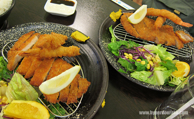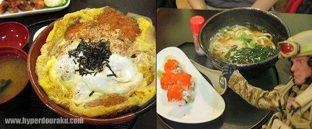 みんなでワイワイと、かつ丼($9.95)、うどんとカリフォルニアロールのセット($9.95)、とんかつ&エビフライセット($12.95)などを注文。