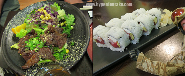 カルビセット($10.95)、グアムロール($8.95)。その他寿司、カレー、焼きそばなど、メニューがとても豊富だった。