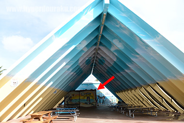 お店のすぐ横にはステージがあって、その奥に横井庄一さんにちなんだ、ちょっとした記念館がある。