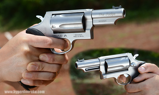 ブラジル トーラス社のリボルバー。.410ショットシェルを撃てる。散弾は数メートル先でもパターンが大きく広がる。蛇なんかを撃つためらしい。