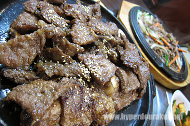 GOSRで上矢ゆいちゃん達とお別れして、この日はさすがにちょっと疲れたのでホテル近くのチョンジワという馴染みの韓国家庭料理屋でカルビを食う。