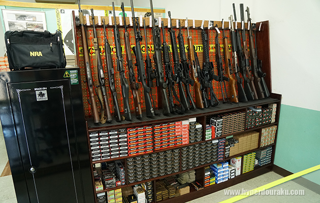 オフィスで撃つ銃を選んで、弾を購入したらレンジへ車で移動する。