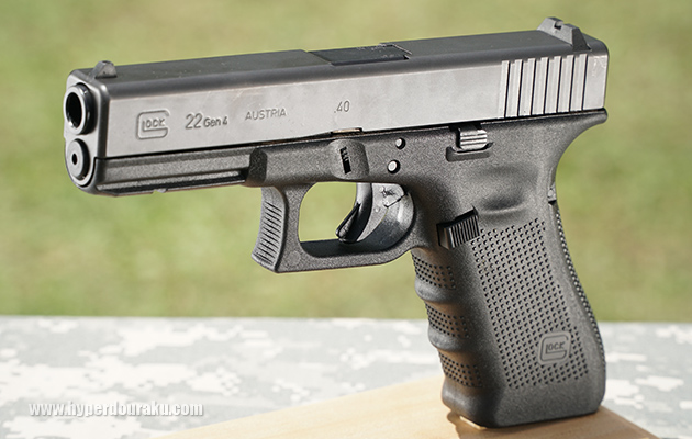 グロック22 Gen4。.40S&W弾を使用する。実銃のグロックのトリガーの感触や、口径の違いによるリコイルの差などを実感できる。