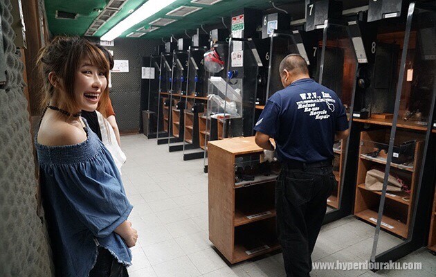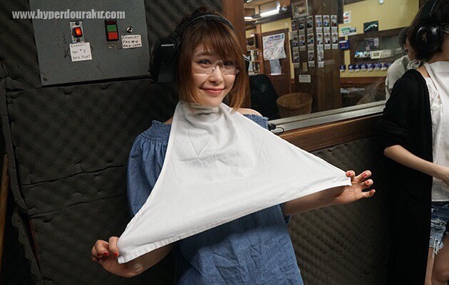 女性には排莢されたエンプティケースが服の中に入らないようにエプロンを貸してもらえる。