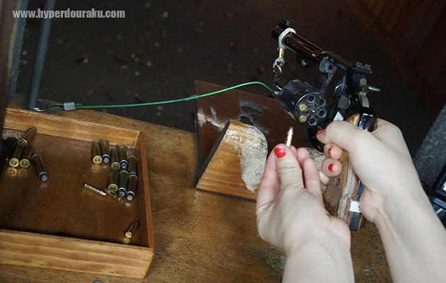 銃はワイヤーでつながれているので安全性は高い。シリンダーへの弾の装填は自身で行う。