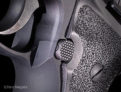 セフティーの操作がしやすいということは、銃で身を守る者にとっては重要なことで、ここに生き死にが かかるといってもよいのですよね。だって敵を前にして銃を抜いたものの、セフティーから親指が滑って撃てなかったなんてことを想像してみてくださいな、、もうそれで人生が終わってしまうのですからね(^_^;