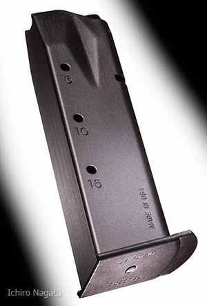 SAOには、このマグが2個付属してくるのです。ドイツ製でもイタリヤ製でもなくて米国製です。オートは弾倉の出来で決定する、なんて言えるくらいにマグは大切でしてね。で、これはフォロワーが改善されており、下側のプレイトの造りにはかつてないほどの質の高さを感じます。タマを入れて3年間ほど放置してみればスプリングの品質は判るのですが、それは今のところなんともいえないのですがね・・・。