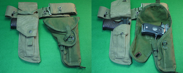 WWI(第一次世界大戦)前後、軍隊におけるハンドガンの主な役目は、指揮官であり重武装を必要としない士官や、一般歩兵のようなライフルを携行出来ない兵(機関銃手、車両運転手、パイロット等)の護身用でした。撃つ機会が少なく携帯している時間が長いので使用するホルスターは誤って拳銃を落としてしまったり、内部に泥やゴミが入り込まない様にフラップ(蓋)で覆われていたり、頑丈なストラップで銃を固定する物が多く製造されました。