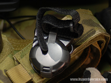 裏面は付属のベロクロ付のベルトを取り付けられるようになっています。サイドにもスイベルがひとつありますので、プレートキャリアなどにも簡単に取り付け可能です。S字のマルチフックもついています。