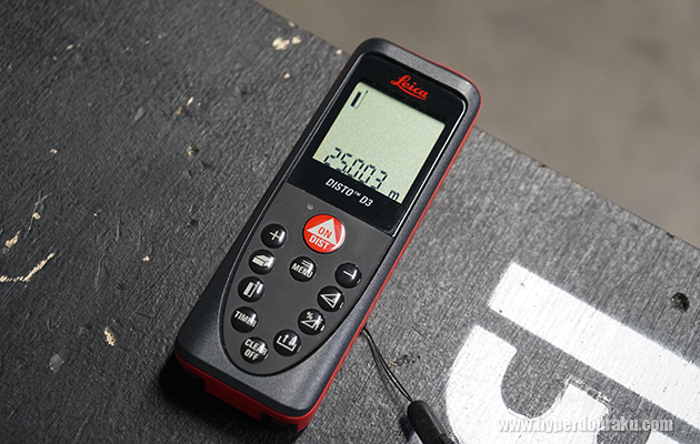標的までの距離は射撃ベンチの前端を基準とし、レーザー測距計で正確に計測。射撃時のHK416 デルタカスタムのフラッシュハイダー先端がピッタリこの位置になるよう常にチェックしながら射撃した。