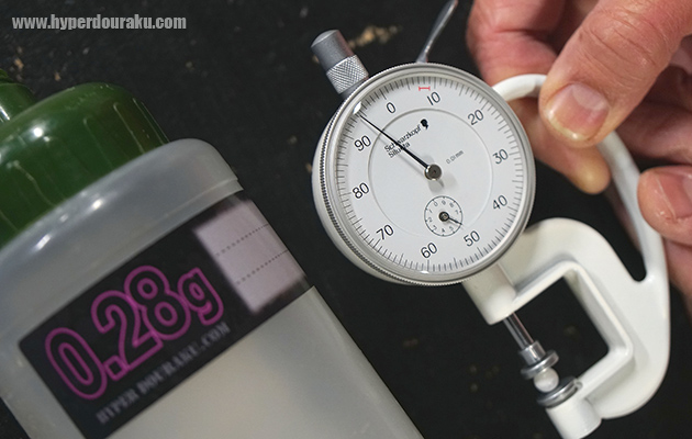 0.28HitCallのデジタルスケール計測値。もちろんこの程度は誤差の範囲内だろう。