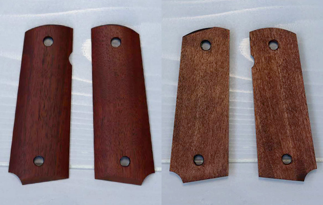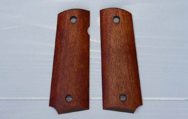 ウォールナット材をオイル仕上げしたスムースタイプグリップ。こちらは裏面はフラットになっています。
