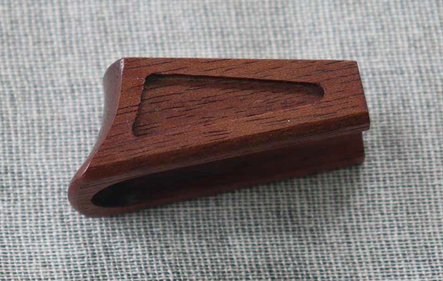マガジンボトムもウォールナット材でオイル仕上げ。