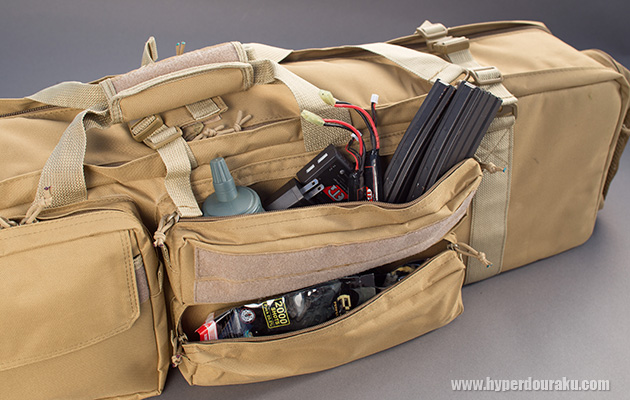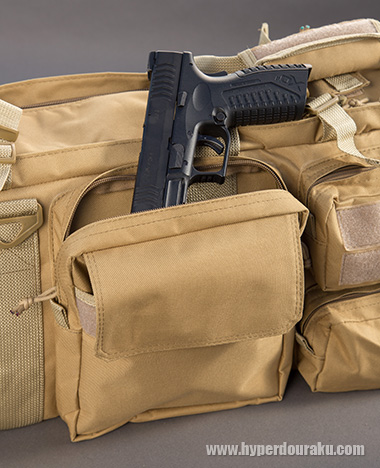 各ポケットにアイテムやトゥールなどを目的別に収納できるので、現場で使うときも素速く必要なものが見つけられ便利です。ウェアやヴェストなどの装備をバッグにまとめれば、コンパクトにまとめて行動しやすい。とても使い易いガンケースです。